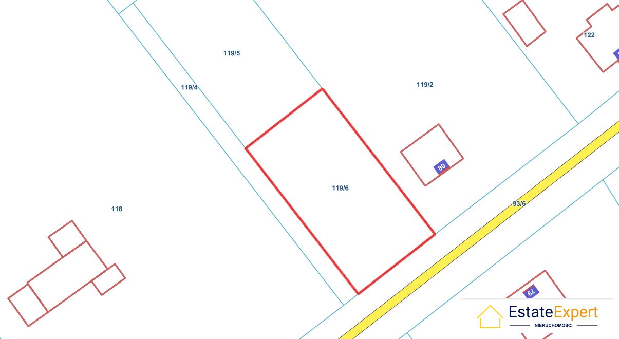Wyodrębniona została również droga wewnętrzna o szer. ok 3, 5 m ( nr. 119/4)